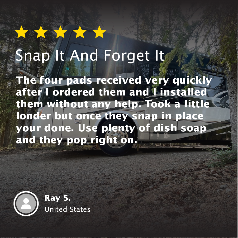 The SnapPad HiWay 10 4-pack includes four high-grade pads for 10” round jack feet commonly used on Class A Motorhomes. Leveling's a breeze with a lifetime of simple & easy leveling with SnapPad HiWay 10!