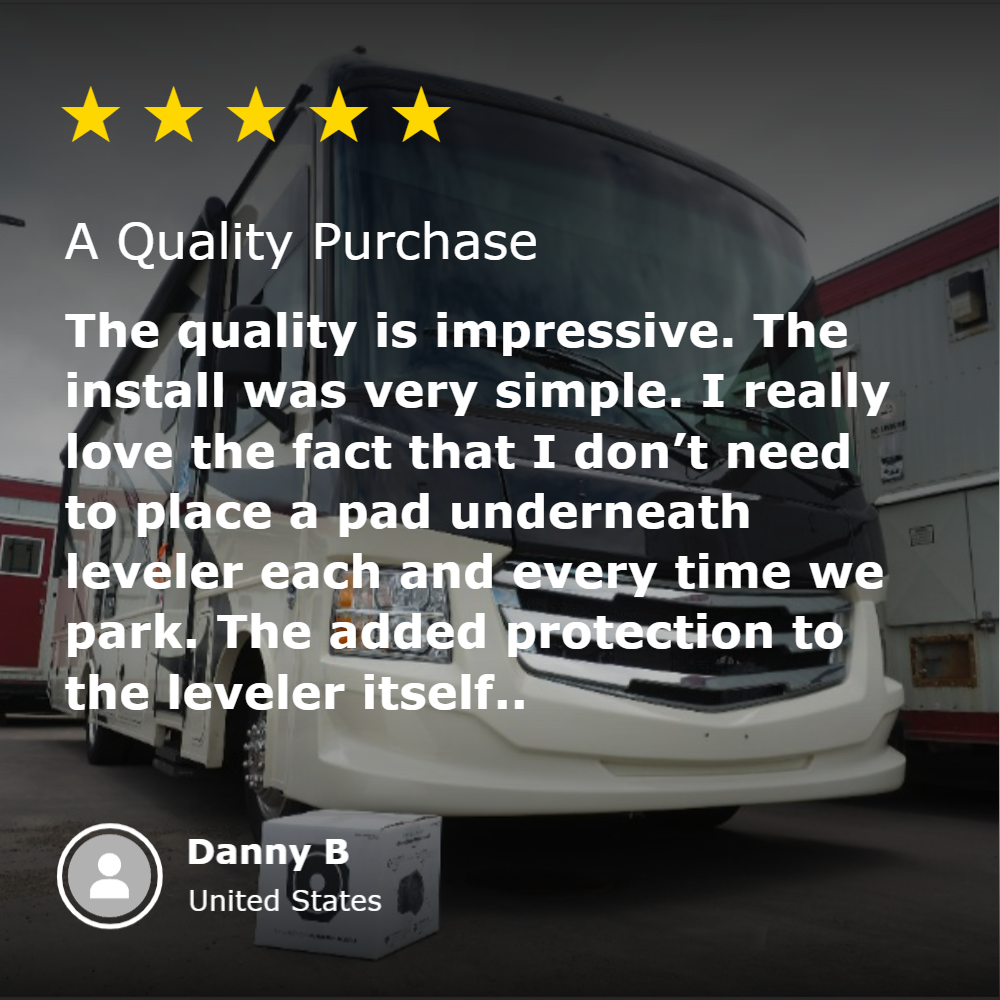 Don't settle for one-size-fits-all leveling pads. Our SnapPad HiWay Plus 4-Pack features two sizes: 8” round for the front and 10” round for the rear, making it perfect for Class A Motorhomes with different sized landing feet. With these permanent jack pads, you'll finally have truly automatic leveling. Roll out on your next adventure with confidence!